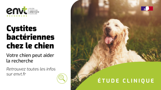 Les quatre Écoles Nationales Vétérinaires françaises (Alfort, Lyon, Nantes et Toulouse) mènent actuellement une étude sur les infections urinaires bactériennes (cystites) chez le chien.