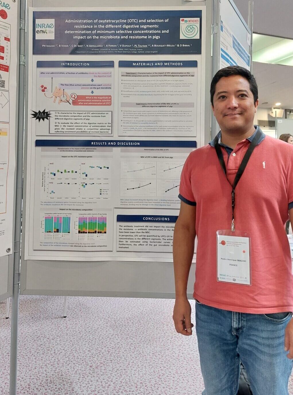 - La détermination de concentrations minimales sélectives (CMS) pour le couple oxytétracycline/Escherichia coli, en reproduisant les conditions in situ via la prise en compte des matrices digestives des différents segments intestinaux (poster, Pedro H. Imazaki).